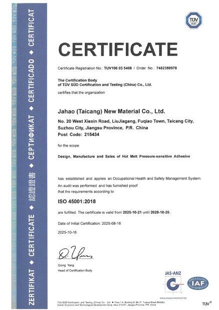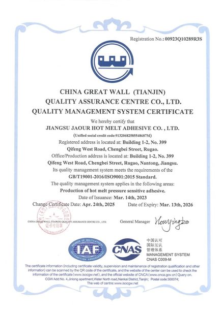 • 중국 Shanghai Jaour Adhesive Products Co.,Ltd 인증서
