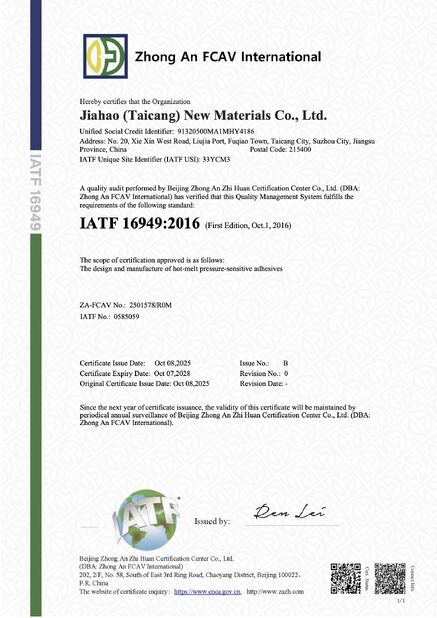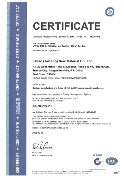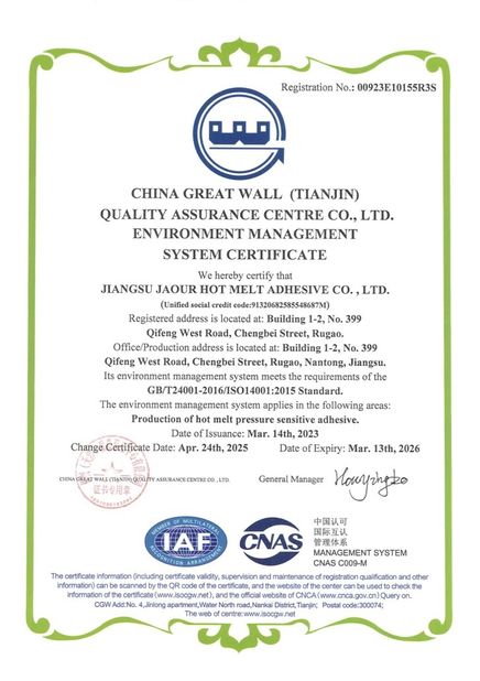 중국 Shanghai Jaour Adhesive Products Co.,Ltd 인증서
